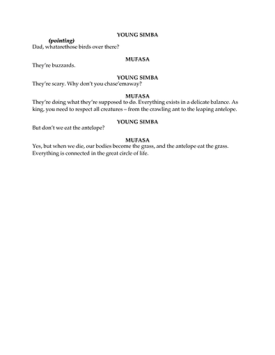 In practice, I translate dramaturgical concepts into student-friendly language by positioning students as “story investigators.” Through interdisciplinary connections, such as linking The Lion King to ecosystems and the Circle of Life, students explore how theatre reflects real-world systems. I also emphasize action-based learning, guiding students to focus on what characters are doing and why, rather than simply how they feel.